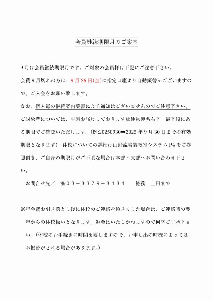 会員期限月のご案内(2025.9.4UP)
